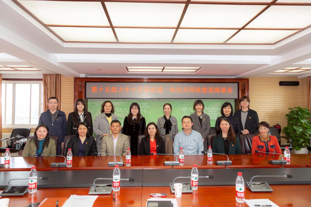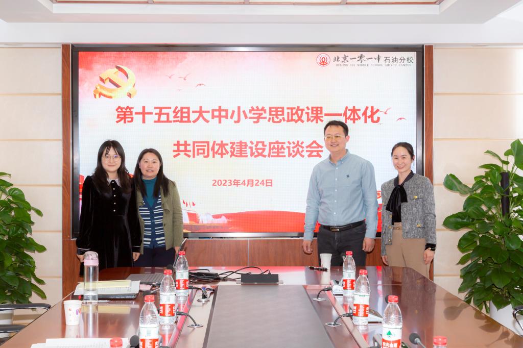 为贯彻落实党的二十大关于“推进大中小学思想政治教育一体化建设”的部署要求,根据北京市教工委《2023年北京市大中小学思想政治教育一体化建设重点任务清单》和区教工委《关于在思政课一体化共同体学校中开展“六个一”工作》中相关工作要求,进一步推进大中小学思政课一体化建设在海淀区开展更加生动的实践,海淀区第十五组大中小思政课一体化共同体建设座谈会在北京一零一中石油分校举行。北京语言大学马克思主义学院作为海淀区第十五组大中小思政课一体化共同体建设单位,学院党总支副书记杨林坡老师、李秋实老师、王然老师及米乐平老师参加了座谈会,出席座谈会的还有北京石油学院附属小学党总支书记夏明霞、北京一零一中石油分校党总支书记曾丽军和校长万锡茂等。