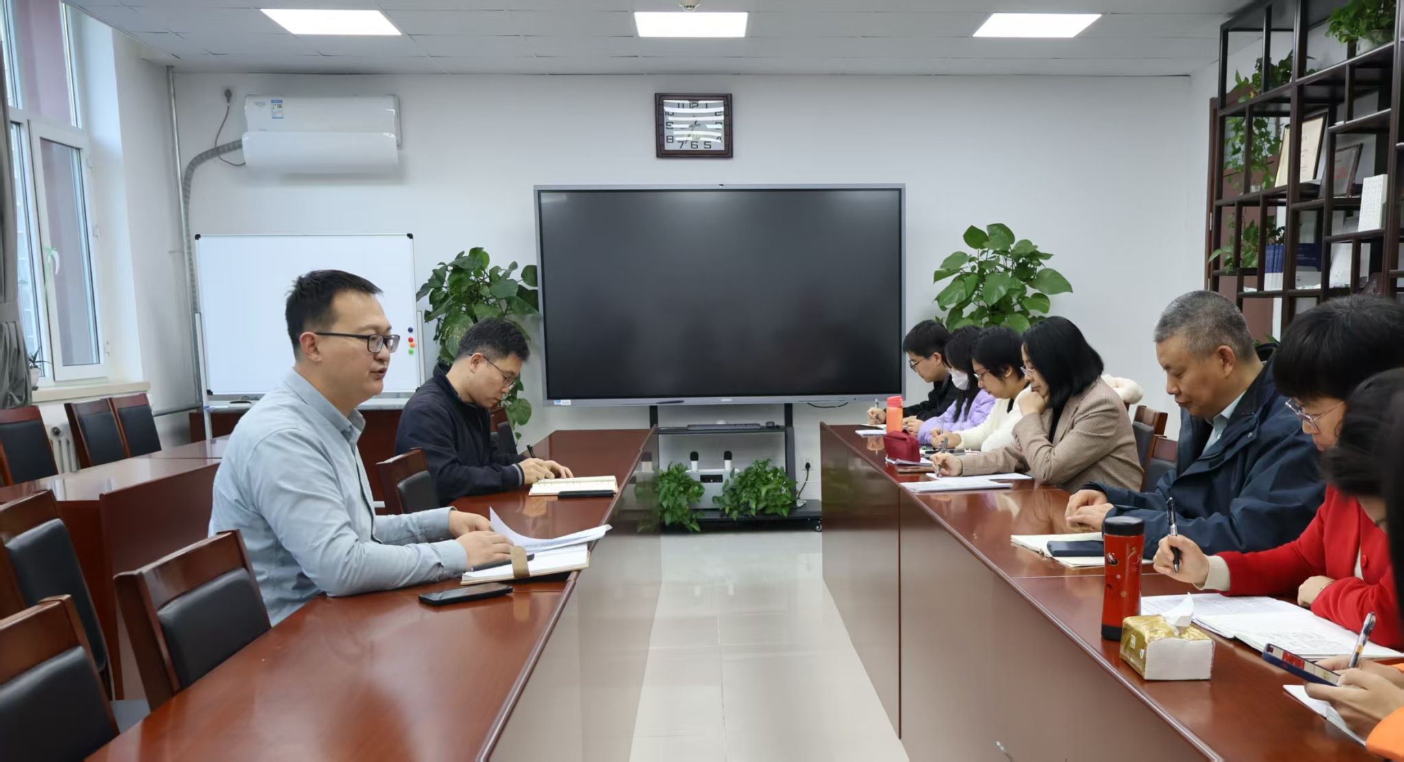 10月27日上午,马克思主义学院在教二楼227会议室召开全体教师大会,专题学习党的二十届四中全会精神,并就“党建引领·学风跃升”及本科教育教学评估迎评工作进行部署。会议由学院领导主持,全体教师参加。