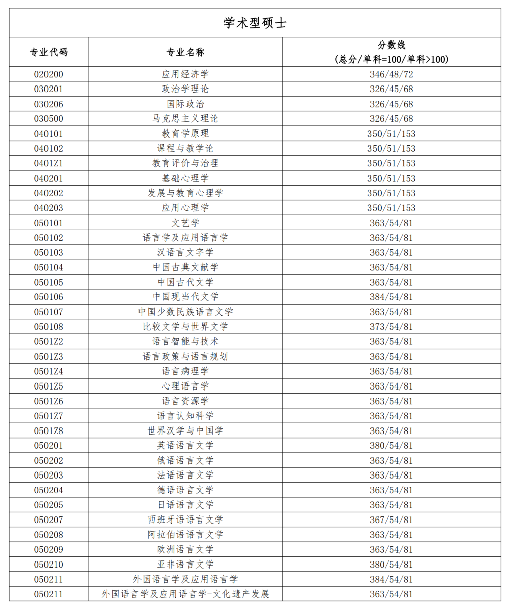 根据《2023 年全国硕士研究生招生考试考生进入复试的初试成绩基本要求》,经学校研究生招生工作领导小组审定,我校硕士研究生招生考试进入复试的初试成绩基本要求如下: