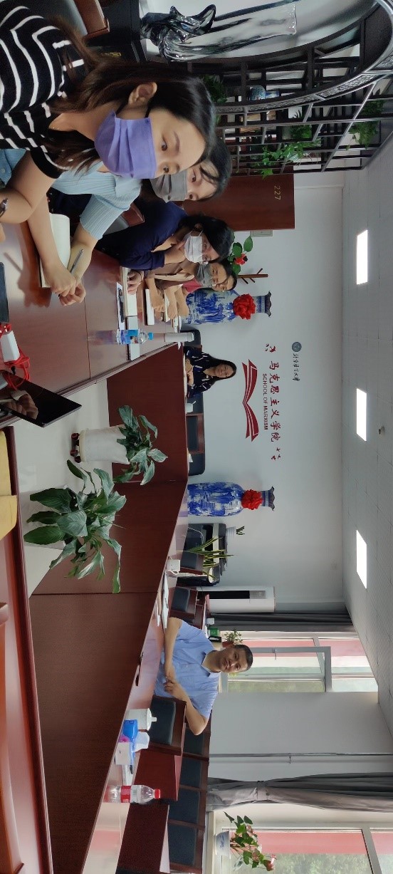 刘洪森副教授作为课题组主要成员参与了两门课程的教材编写工作。他以《教材、教学、教法》为题,清晰而全面地介绍了这两门课程教材的版本沿革和逻辑关系,结合“毛泽东思想和中国特色社会主义理论体系概论”的教学实际分享了教材向教学转化的思路和经验,分析了两门课程各自的教学特点和重点。提出课程应做到问题导向、内容为王,教师要善于在理论中发现历史,通过丰富的教学素材将课程讲准、讲深、讲透、讲活。