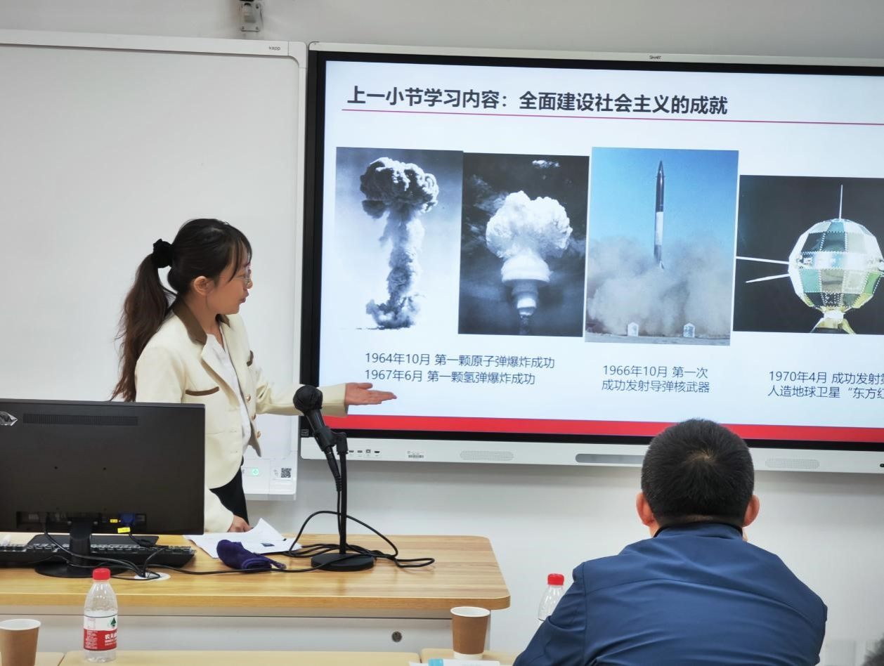 中国近现代史纲要课王丽娜老师以“两弹一星”精神为主题,阐释了“两弹一星”研制成功,是中华民族为之自豪的伟大成就。钱学森、钱三强、邓稼先等一大批科学家,带着“干惊天动地事,做隐姓埋名人”的决心,把热血洒在戈壁滩,把青春和生命奉献给新中国国防建设事业,将热爱祖国、无私奉献、自力更生、艰苦奋斗、大力协同、勇于登攀的“两弹一星”精神,永久镌刻在中国大地上,成为全国各族人民宝贵的精神财富和不竭的动力源泉。