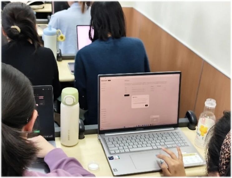 在韩老师的引导下,学生们亲身体验了该学院自主研发的“AI灵谷”英语口语学习平台。从“国家信访局”官方译名的探讨,到中国特色的“接诉即办”机制的对外传播实践,韩老师通过一系列生动的案例,展示了人工智能技术如何助力提升跨文化沟通能力。