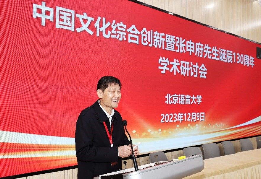 为深入贯彻习近平总书记在文化传承发展座谈会上的重要讲话,进一步推动张申府张岱年学术思想研究,在杜运辉教授《张申府先生学谱》出版之际,中国文化综合创新暨张申府先生诞辰130周年学术研讨会于2023年12月9日在北京语言大学召开。研讨会由中国哲学史学会张岱年学术思想研究专业委员会、中国哲学史学会现代哲学专业委员会、北京语言大学中国文化综合创新研究中心、河北师范大学张申府张岱年研究中心主办,大连理工大学马克思主义学院协办,北京语言大学马克思主义学院承办。来自北京大学、清华大学、中央社会主义学院、武汉大学、华东师范大学、大连理工大学、河北师范大学、上海师范大学、黑龙江大学、中南大学、天津师范大学、广西师范大学、河北经贸大学等全国高等院校和中央党校(国家行政学院)、国家民族事务委员会、国家文化和旅游部、中国社会科学院、国家图书馆、中国共产党早期北京革命活动纪念馆、北京市委党史研究室、中华社会文化发展基金会、河北人民出版社、中国社会科学出版社等单位的80余位学者参加。