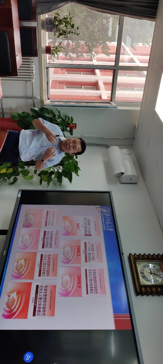 刘洪森副教授作为课题组主要成员参与了两门课程的教材编写工作。他以《教材、教学、教法》为题,清晰而全面地介绍了这两门课程教材的版本沿革和逻辑关系,结合“毛泽东思想和中国特色社会主义理论体系概论”的教学实际分享了教材向教学转化的思路和经验,分析了两门课程各自的教学特点和重点。提出课程应做到问题导向、内容为王,教师要善于在理论中发现历史,通过丰富的教学素材将课程讲准、讲深、讲透、讲活。