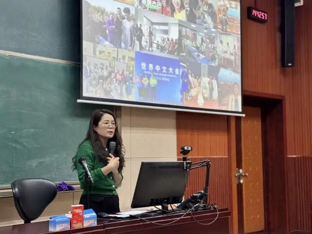 活动伊始,孔子学院工作处副处长苏文娟以“全球孔子学院发展与北语担当”为主题展开讲解。苏老师本身既承担中方院长、公派教师、国际中文教育志愿者的相关人事工作,又曾于2013-2015年期间赴古巴哈瓦那大学担任公派教师。她系统介绍了全球孔子学院的整体布局、发展现状及在促进中外文化交流中的重要作用,重点梳理了北京语言大学在孔子学院建设中的特色与成果。针对学生关注的实践机会,苏文娟详细解读了我校孔子学院公派项目,从国际中文教育志愿者的选拔标准、报名流程到岗前培训、海外服务内容等方面进行了全面说明,为有意向投身国际中文教育事业的学生提供了清晰指引。