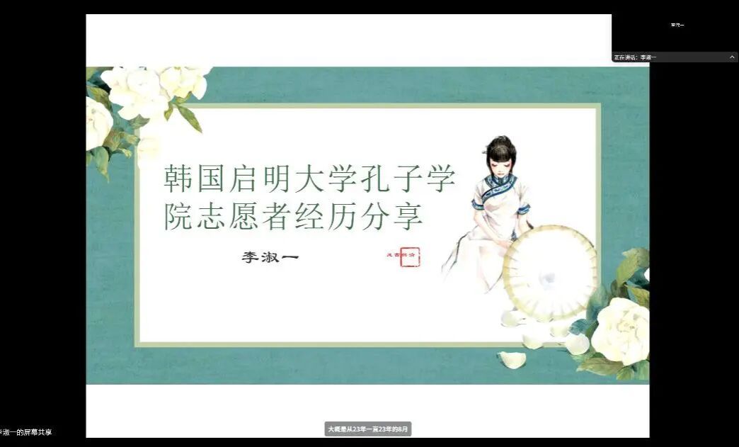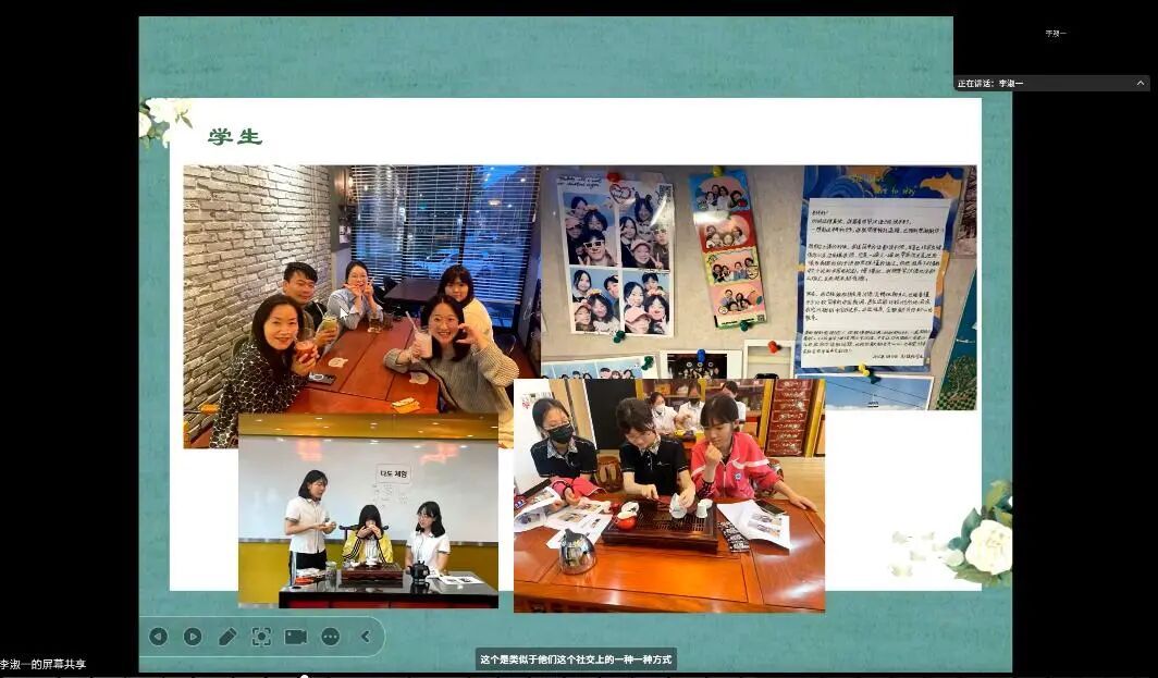 最后,课程邀请到我校外派至韩国启明大学孔子学院的志愿者李淑一、外派古巴哈瓦那大学孔子学院的志愿者李猛通过网络连线分享一线工作心得。李淑一结合她在韩期间的教学日常、文化活动组织经历,生动讲述了如何克服语言障碍、适应跨文化环境,以及在帮助韩国学生学习中文、传播中国文化过程中的收获与感动。李猛则在连线前克服了当地停电的困难,辗转在友人处与我们的课堂建立了通话,这从一个侧面使学生们看到了海外志愿工作的不易。而分享中李猛传达出更多的是对国际中文教育的赤诚与热爱,他对自己海外的教学生活经历如数家珍,同学们也都听得津津有味。李猛在古巴工作期间学生出席率高达120%,曾多次获得当地主流媒体的报道,如今他更是凭借自媒体平台,拓展国际中文教育更大的舞台。