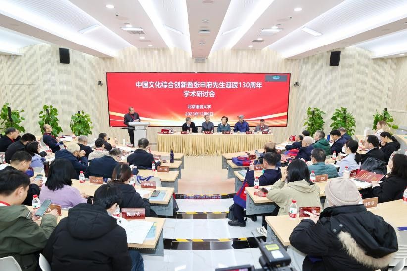 为深入贯彻习近平总书记在文化传承发展座谈会上的重要讲话,进一步推动张申府张岱年学术思想研究,在杜运辉教授《张申府先生学谱》出版之际,中国文化综合创新暨张申府先生诞辰130周年学术研讨会于2023年12月9日在北京语言大学召开。研讨会由中国哲学史学会张岱年学术思想研究专业委员会、中国哲学史学会现代哲学专业委员会、北京语言大学中国文化综合创新研究中心、河北师范大学张申府张岱年研究中心主办,大连理工大学马克思主义学院协办,北京语言大学马克思主义学院承办。来自北京大学、清华大学、中央社会主义学院、武汉大学、华东师范大学、大连理工大学、河北师范大学、上海师范大学、黑龙江大学、中南大学、天津师范大学、广西师范大学、河北经贸大学等全国高等院校和中央党校(国家行政学院)、国家民族事务委员会、国家文化和旅游部、中国社会科学院、国家图书馆、中国共产党早期北京革命活动纪念馆、北京市委党史研究室、中华社会文化发展基金会、河北人民出版社、中国社会科学出版社等单位的80余位学者参加。